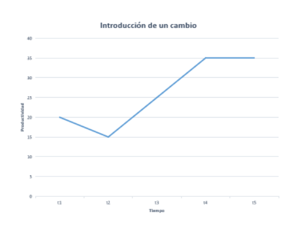 Cada vez que se introduce un cambio en un sistema, la productividad se reduce inicialmente por motivos como pueden ser aprendizaje de una nueva herramienta, adquirir conocimientos para el desempeño de una nueva tarea, etc. Una vez pasada dicha asimilación del cambio, la productividad generada aumenta por encima del valor previo al cambio.